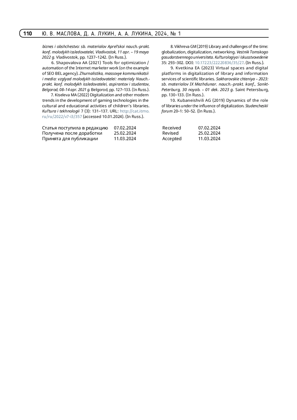 Автор (ы): Маслова Юлия Викторовна, Лукин Дмитрий Александрович, Лукина Алена Алексеевна