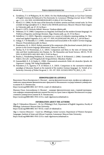 13. Нечай Ю. П., Поверенная А. А. Сравнение и литота в текстах немецких волшебных сказок и их трансформации на русский язык // Гуманитарные и социальные науки. 2023. Т. 100. № 5. С. 79-85. DOI: 10.18522/2070-1403-2023-100-5-79-85 EDN: SUOWNV