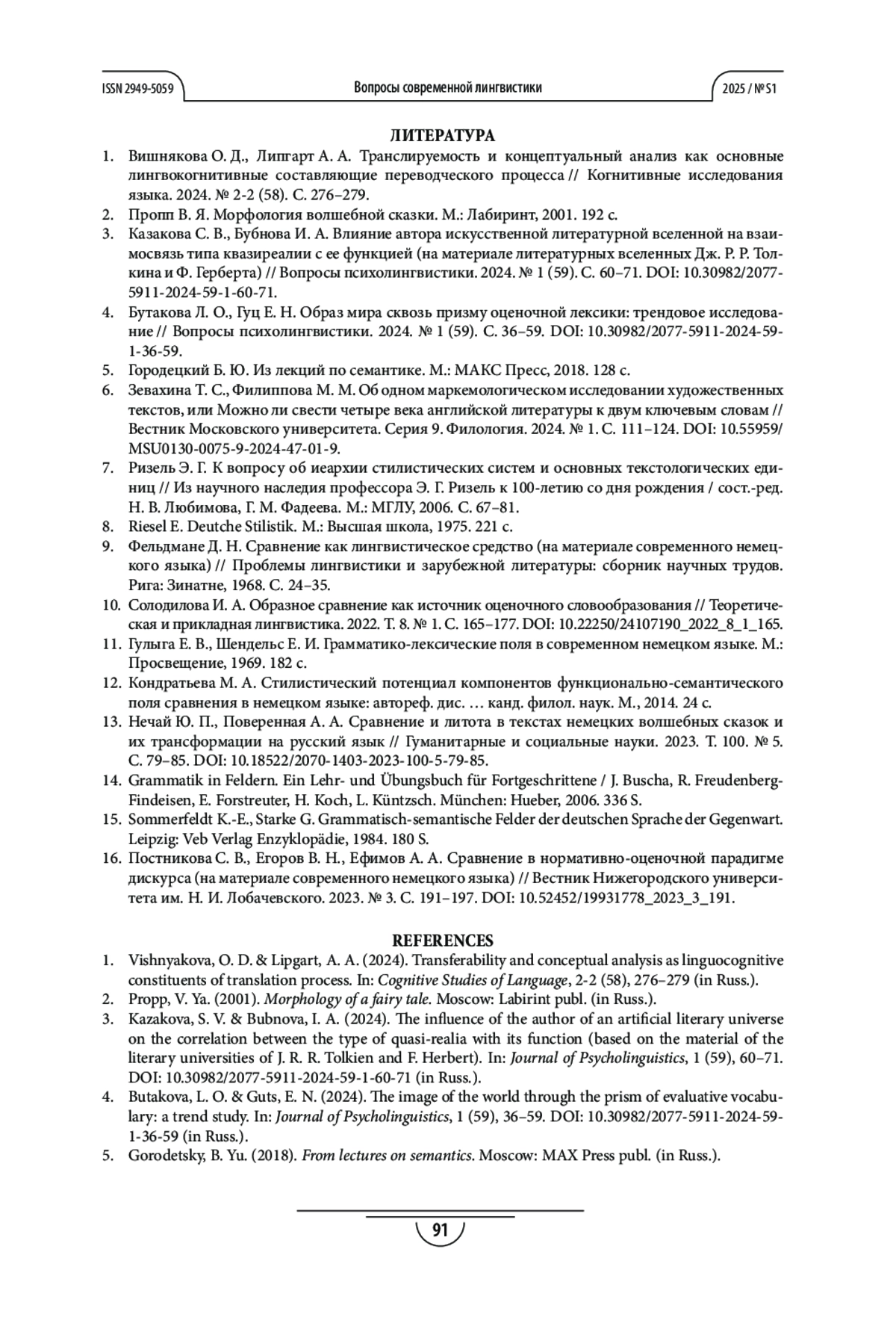 4. Бутакова Л. О., Гуц Е. Н. Образ мира сквозь призму оценочной лексики: трендовое исследование // Вопросы психолингвистики. 2024. № 1 (59). С. 36-59. DOI: 10.30982/2077-5911-2024-59-1-36-59 EDN: SXROQQ