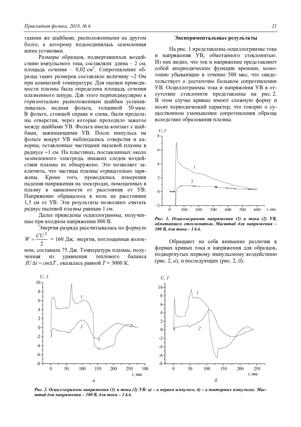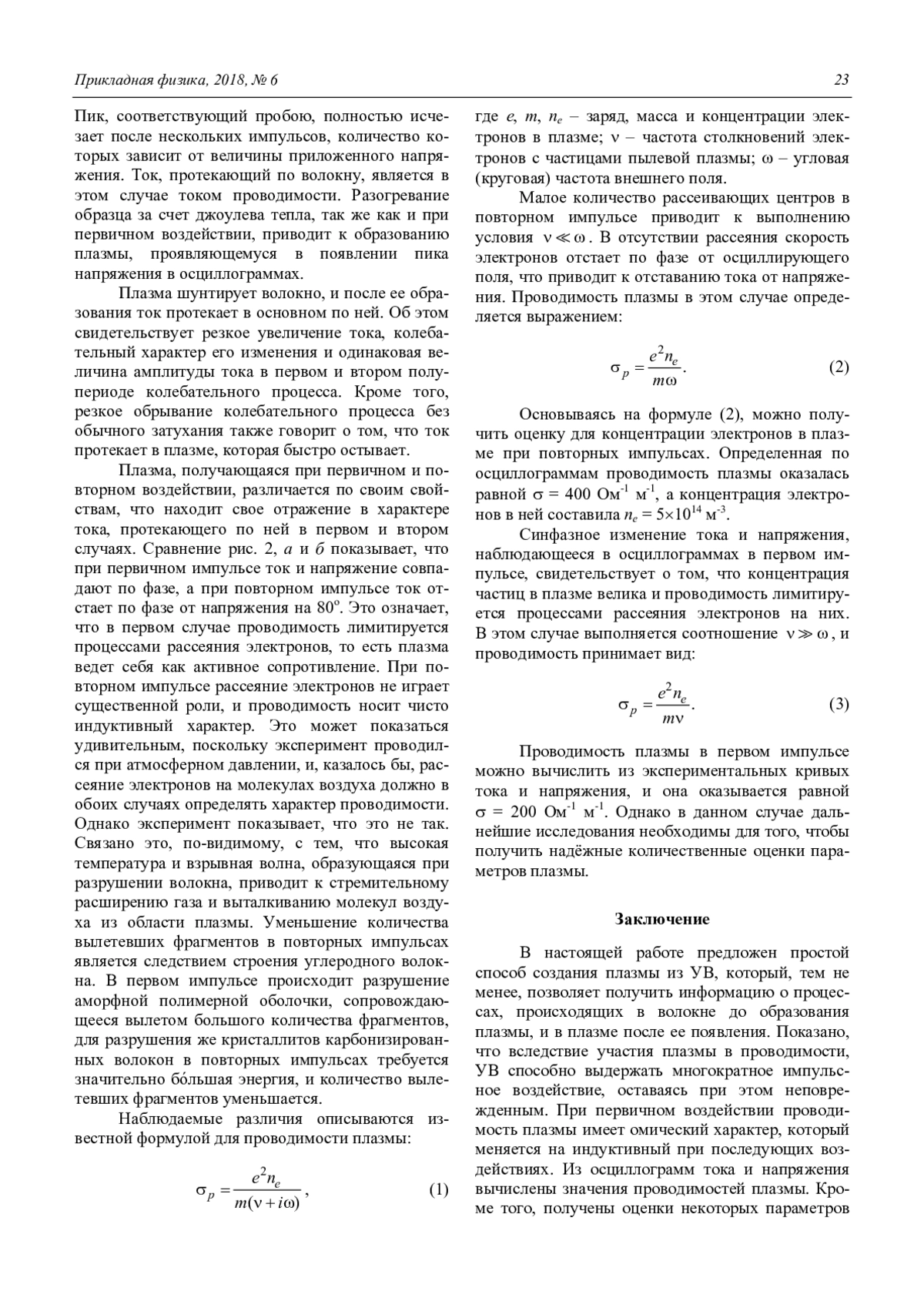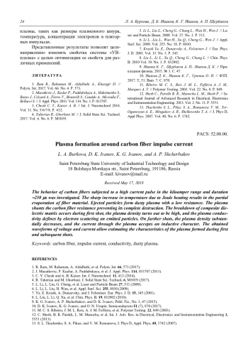 БУРКОВА Л. А., ИВАНОВ Д. К., ИВАНОВ К. Г., ЩЕРБАКОВ А. П. ОБРАЗОВАНИЕ ПЛАЗМЫ ВОКРУГ УГЛЕРОДНОГО ВОЛОКНА ПОД ВОЗДЕЙСТВИЕМ ИМПУЛЬСНОГО ТОКА // ПРИКЛАДНАЯ ФИЗИКА. 2018. №6