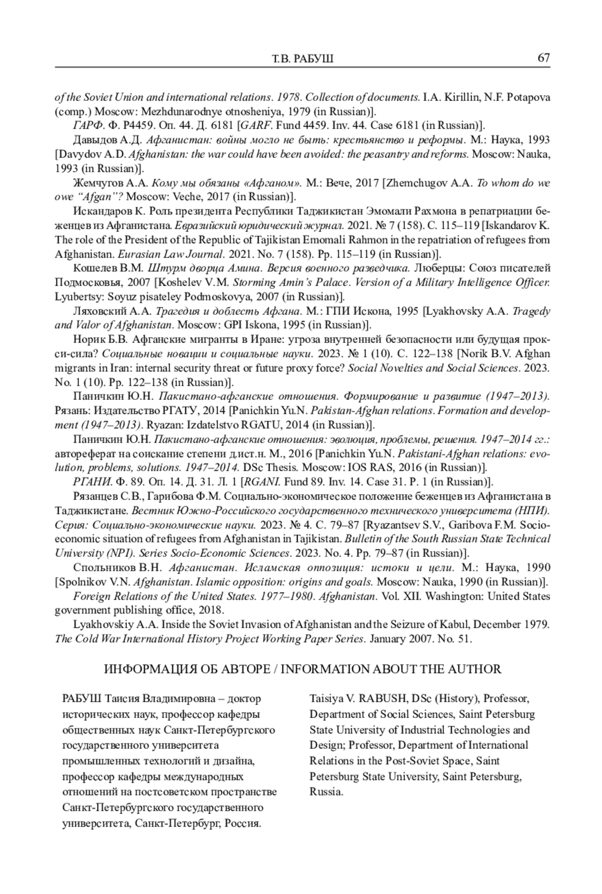 30. Рязанцев С.В., Гарибова Ф.М. Социально-экономическое положение беженцев из Афганистана в Таджикистане. Вестник Южно-Российского государственного технического университета (НПИ). Серия: Социально-экономические науки. 2023. № 4. С. 79-87.