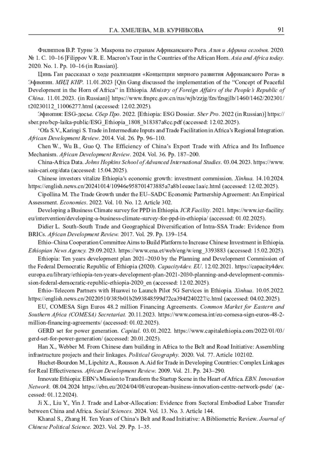 12. Цинь Ган рассказал о ходе реализации “Концепции мирного развития Африканского Рога” в Эфиопии. https://www.fmprc.gov.cn/rus/wjb/zzjg/fzs/fzsgjlb/1460/1462/202301/t20230112_11006277.html (assessed 12.02.2025).