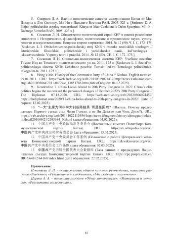 6. Сосковец Л. И. Общественно-политический строй КНР в оценке российских синологов // Исторические, философские, политические и юридические науки, культурология и искусствоведение. Вопросы теории и практики. 2014. № 12 (50). Ч. I. C. 172-175.