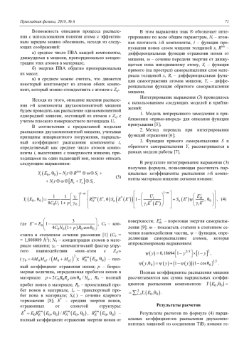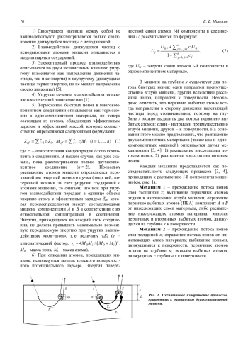 2. Множитель в формуле определяет долю энергии, поглощенной многокомпонентной мишенью, приходящейся на данную компоненту. Вследствие этого более легкий компонент распыляется интенсивнее, и возможна ситуация, как и в случае преимущественного распыления менее связанной компоненты.
