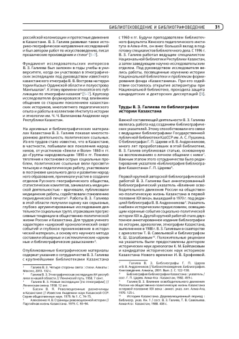 5. Галиев В. З. Список книг, исследований, основных статей, опубликованных В. З. Галиевым за 1958-1997 гг. // Библиотечное дело в Казахстане (вторая половина ХIХ - начало ХХ веков). Алматы, 1998. С. 145-158.