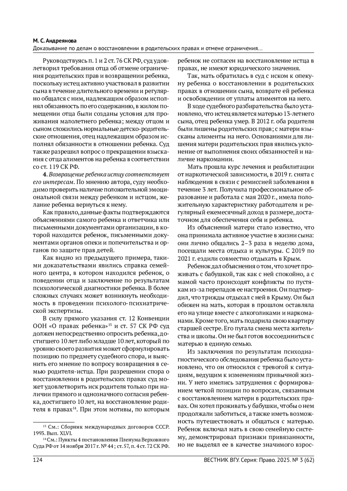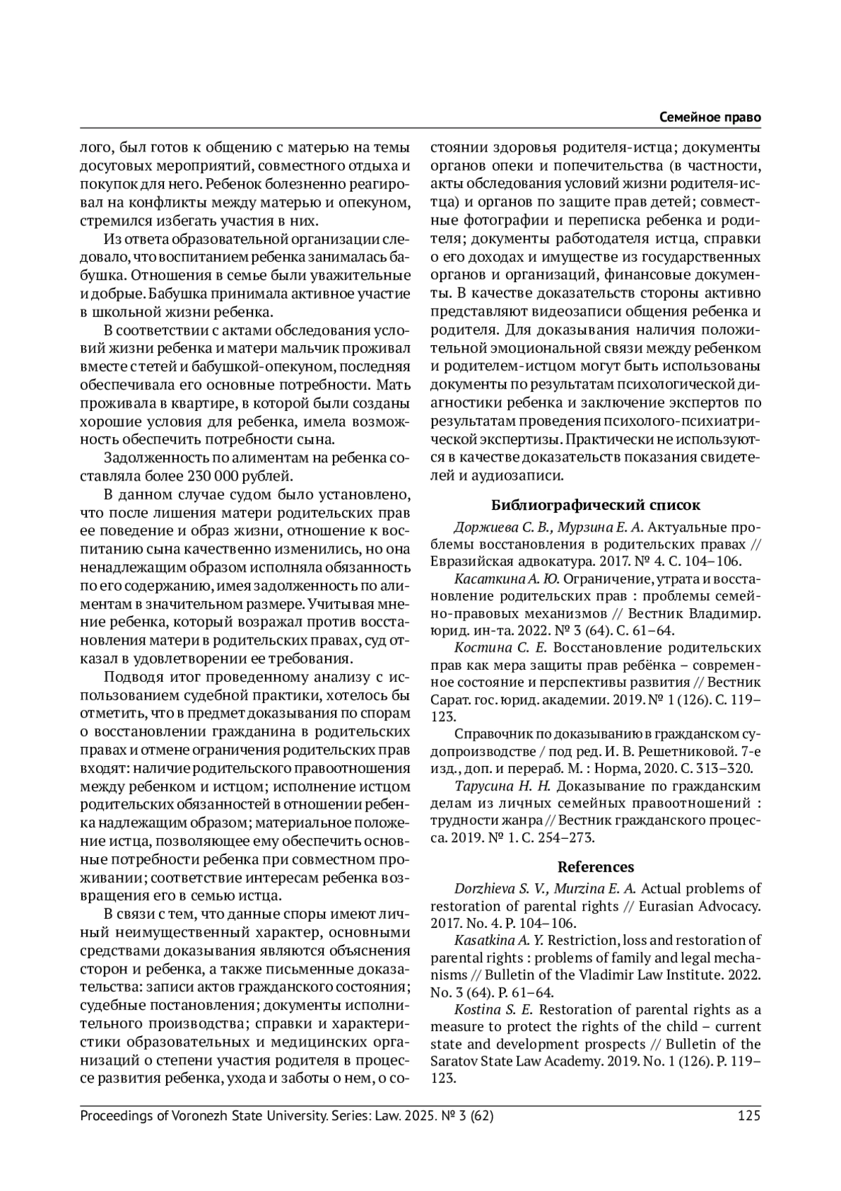 3. Костина С. Е. Восстановление родительских прав как мера защиты прав ребёнка - современное состояние и перспективы развития // Вестник Сарат. гос. юрид. академии. 2019. № 1 (126). С. 119123.