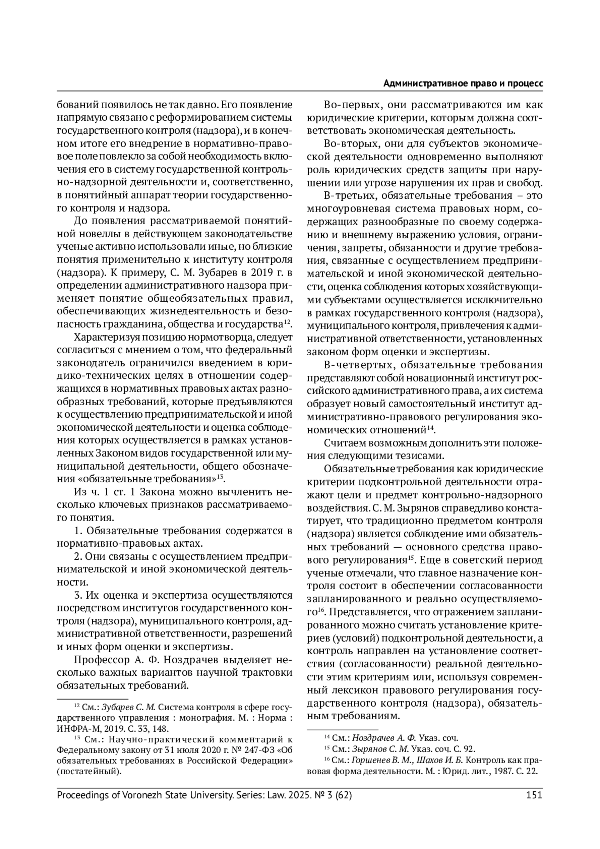 7. Ноздрачев А. Ф. Обязательные требования как новационный институт административного права: идеи, содержание, принципы и уровни правового регулирования // Административное право и процесс. 2022. № 3. С. 19-24; № 5. С. 8-15. EDN: AEHBDN