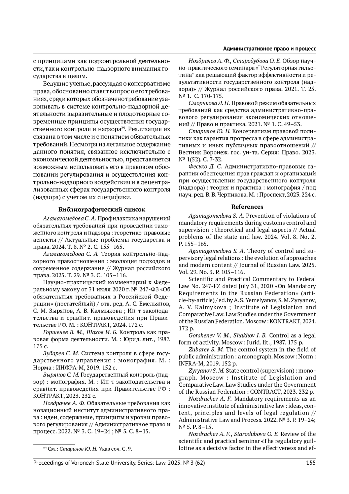 2. Агамагомедова С. А. Теория контрольно-надзорного правоотношения: эволюция подходов и современное содержание // Журнал российского права. 2025. Т. 29. № 3. С. 105-116. EDN: HEDNOE