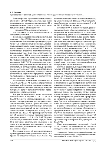 6. Прохоров Л. А., Собин Д. В., Шаманова Е. А. Административно-правовой рецидив в ракурсе противодействия дорожно-транспортным преступлениям (статьи 264.1, 264.2, 264.3 УК РФ) // Российский следователь. 2024. № 12. С. 34-38. EDN: BPBKCI