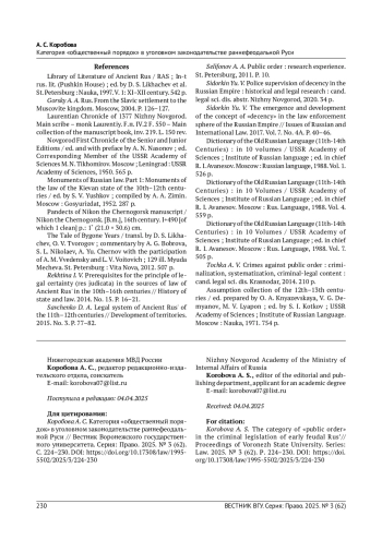 11. Сидоркин Ю. В. Полицейский надзор за благочинием в Российской империи: историко-правовое исследование: автореф. дис.. канд. юрид. наук. Н. Новгород, 2020. 34 с. EDN: YQOVIS