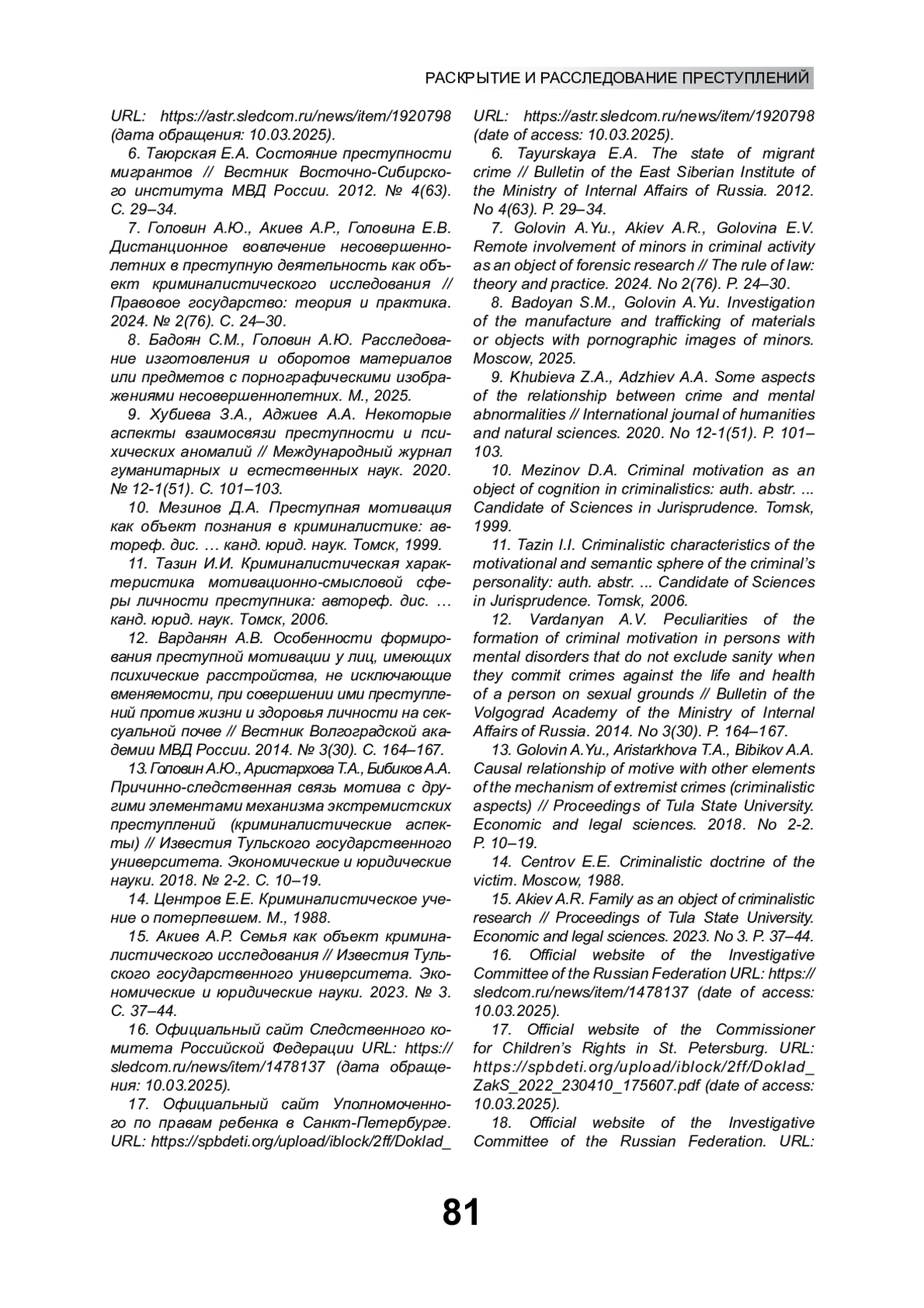 Статья: ХАРАКТЕРИСТИКА ЛИЧНОСТИ СУБЪЕКТОВ ПРЕСТУПЛЕНИЙ ПРОТИВ СЕМЬИ И НЕСОВЕРШЕННОЛЕТНИХ В СИСТЕМЕ КРИМИНАЛИСТИЧЕСКОГО ОБЕСПЕЧЕНИЯ ИХ РАССЛЕДОВАНИЯ И ПРЕДУПРЕЖДЕНИЯ (2025)