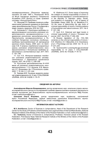 17. Сыч К.А. Историко-правовые тенденции уголовной ответственности несовершеннолетних // Евразийский юридический журнал. 2021. № 2(153). С. 258-259. EDN: EHXXAZ