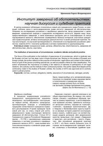8. Морозов А.В. Заверения об обстоятельствах как “правовой трансплант” в современном праве России // Журнал зарубежного законодательства и сравнительного правоведения. 2018. № 6. EDN: YTOYBF