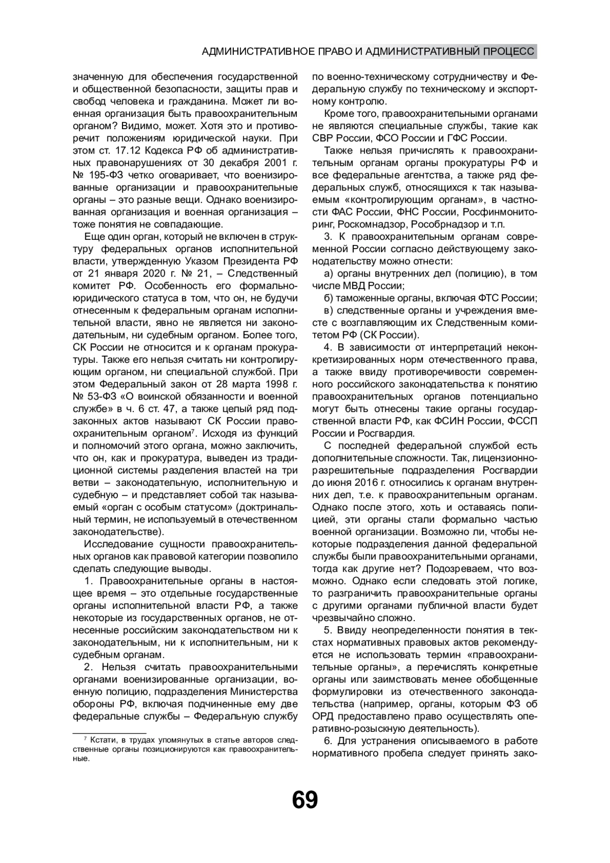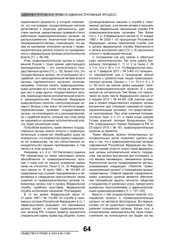 ТЕТЕРЯТНИКОВ Н. Ю., ЖЕЛЕЗНЯК Н. С. ПРАВООХРАНИТЕЛЬНЫЕ ОРГАНЫ КАК ПРАВОВАЯ КАТЕГОРИЯ // ОБЩЕСТВО И ПРАВО. 2024. № 2 (88)