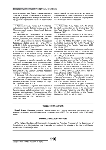 1. Автономов А.С., Попов С.А. Постатейный комментарий к Федеральному закону “Об Общественной палате Российской Федерации”. М., 2007. EDN: QXJZHJ