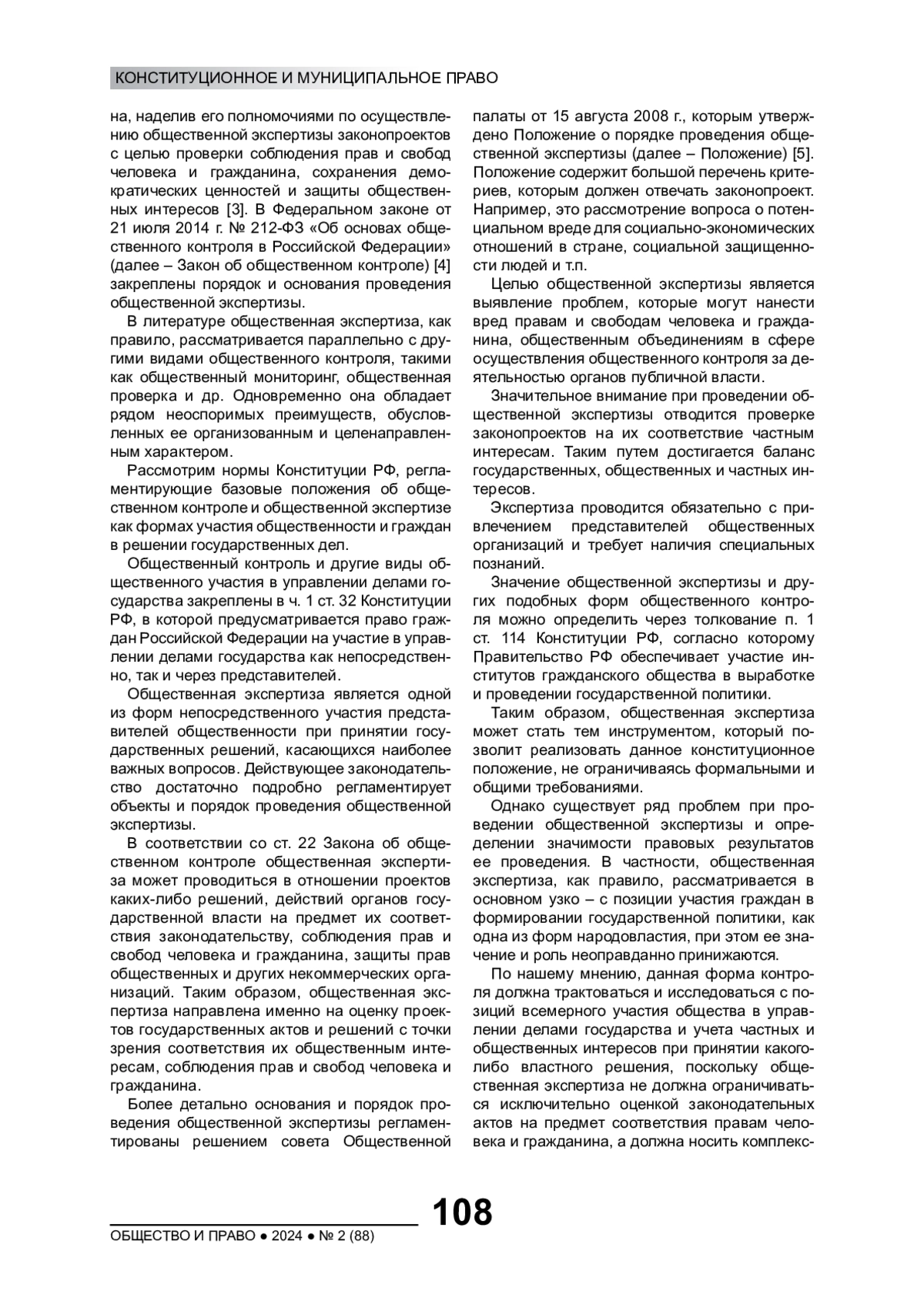 Институт общественной экспертизы играет важную роль в вопросе формирования демократических основ Российского государства, является одной из форм общественного контроля за деятельностью органов государственной власти. Данное положение основано на ряде конституционных норм, посвященных участию общества в управлении делами государства. Так, в соответствии со ст. 3 Конституции РФ единственным источником власти в Российской Федерации является ее многонациональный народ, который осуществляет власть непосредственно или через органы государственной власти и органы местного самоуправления.