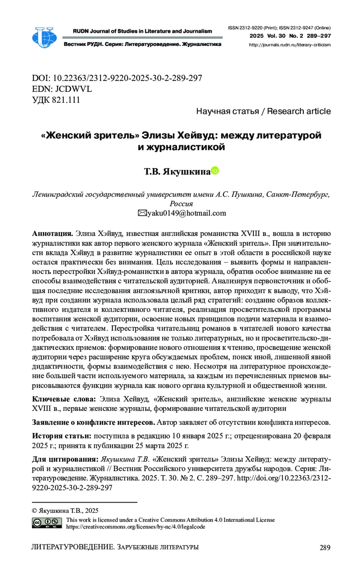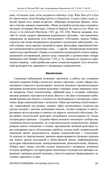 6. Созинова К.А. Элиза Хейвуд vs маркиз Галифакс: кризис морально-этических ценностей в Британии в конце XVII - первой половине XVIII века // Вестник Рязанского государственного университета имени С.А. Есенина. 2023. № 2(79). С. 58-68. EDN: LIEUVA