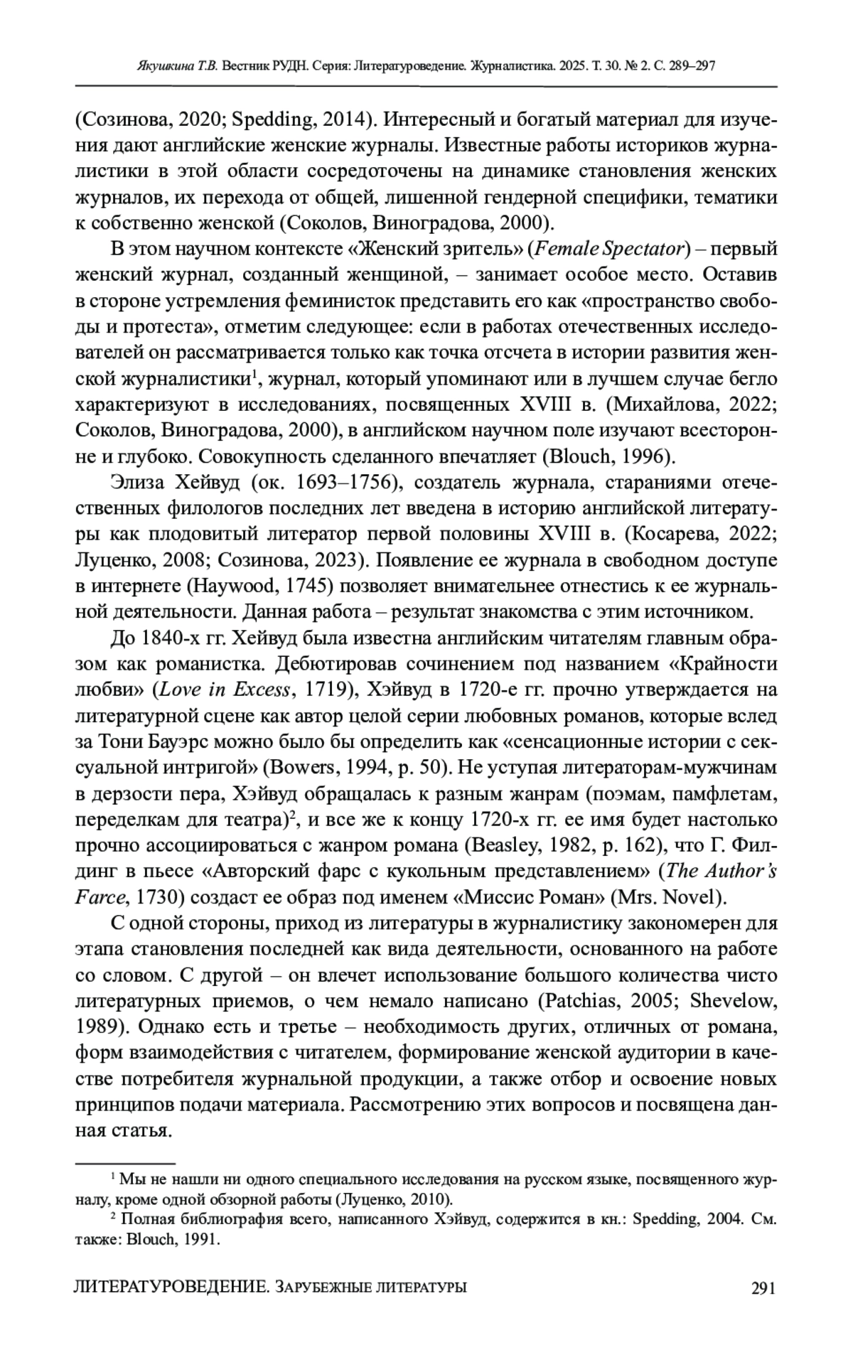 20. Spedding P. A Bibliography of Eliza Haywood. London: Routledge, 2004. 848 p. DOI: 10.4324/9781315476216