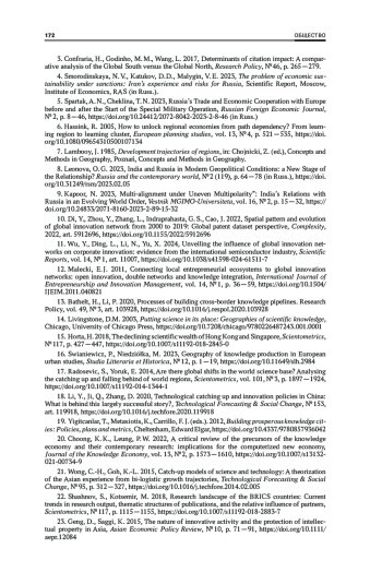 22.Shashnov, S., Kotsemir, M. 2018, Research landscape of the BRICS countries: Current trends in research output, thematic structures of publications, and the relative influence of partners, Scientometrics, № 117, p. 1115—1155. EDN: VAHKTS, https://doi.org/10.1007/s11192-018-2883-7