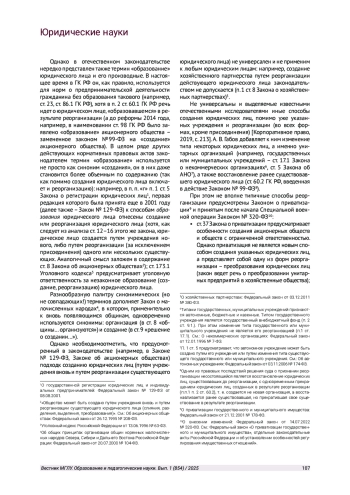 4. Суханов Е. А. Реорганизация акционерных обществ и других юридических лиц // Хозяйство и право. 1996. № 1. С. 148-152.