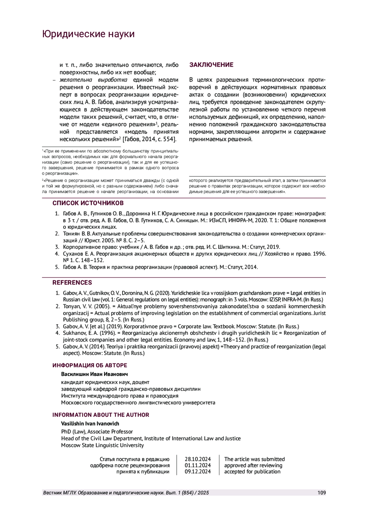 5. Габов А. В. Теория и практика реорганизации (правовой аспект). М.: Статут, 2014. EDN: SHEFVJ