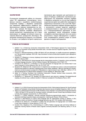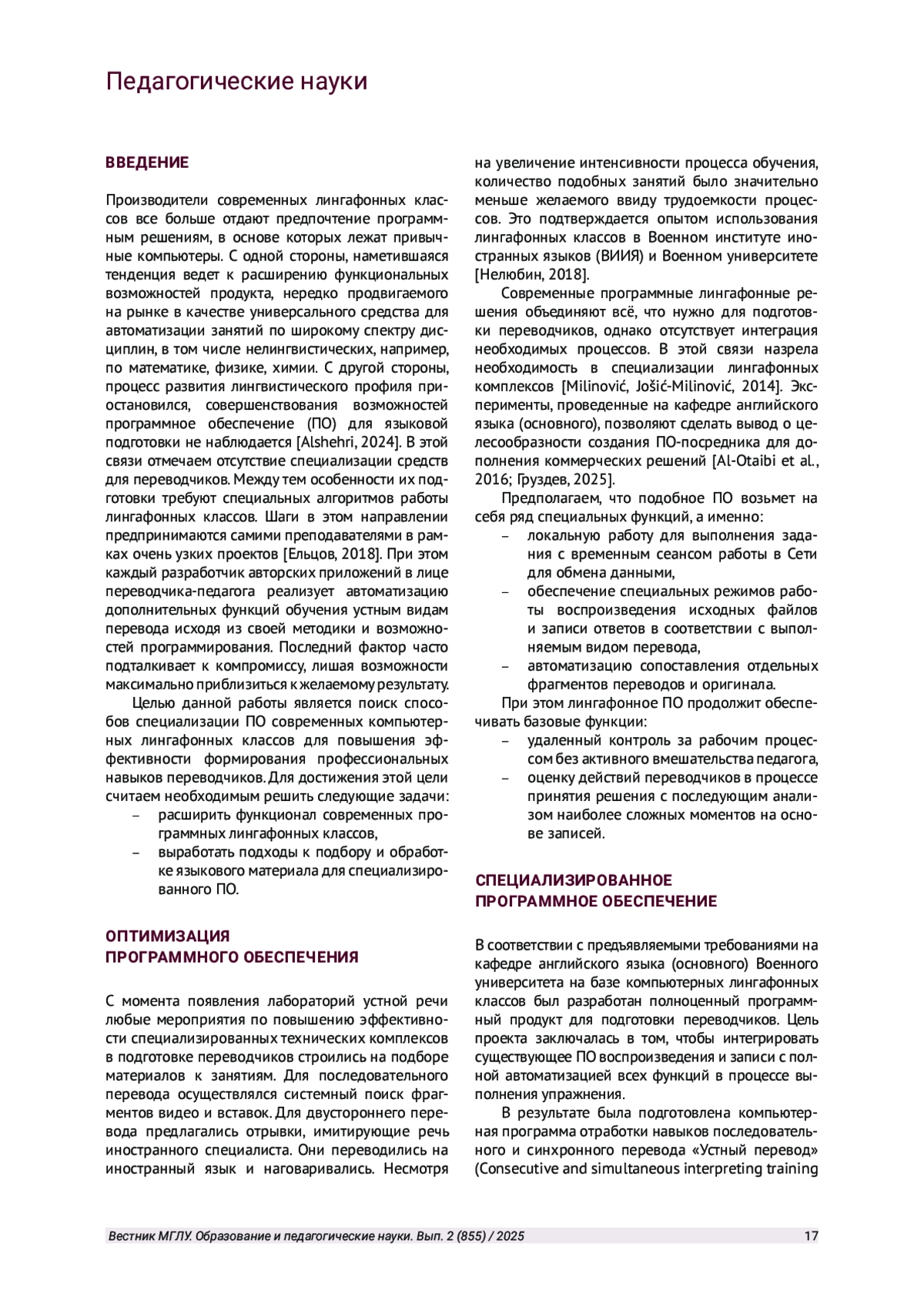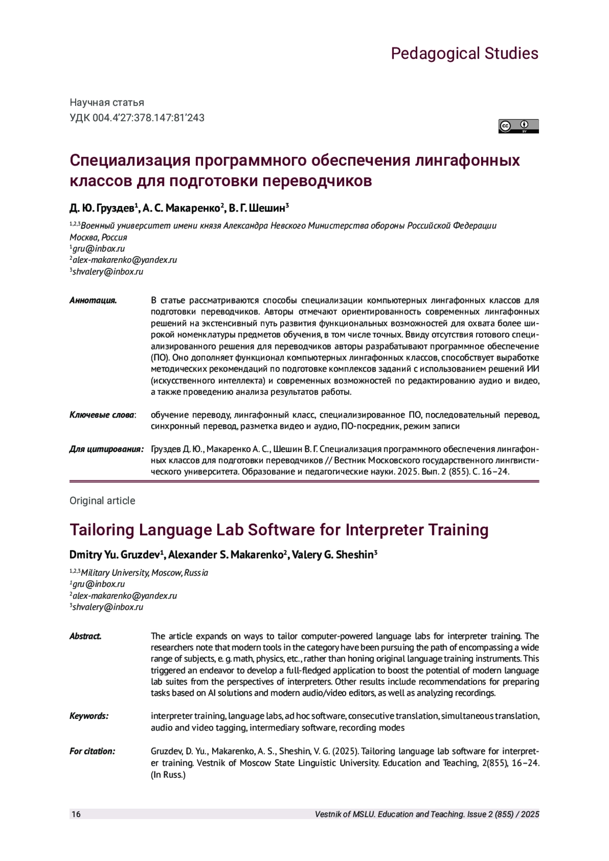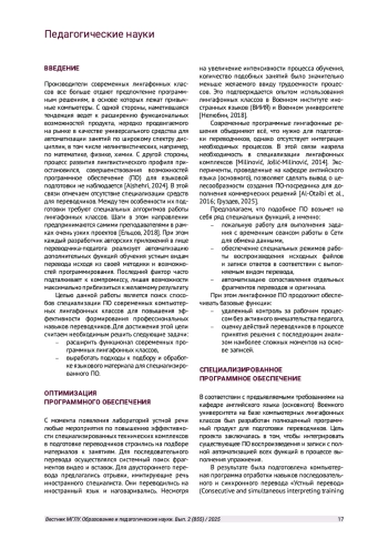 Статья: СПЕЦИАЛИЗАЦИЯ ПРОГРАММНОГО ОБЕСПЕЧЕНИЯ ЛИНГАФОННЫХ КЛАССОВ ДЛЯ ПОДГОТОВКИ ПЕРЕВОДЧИКОВ (2025)