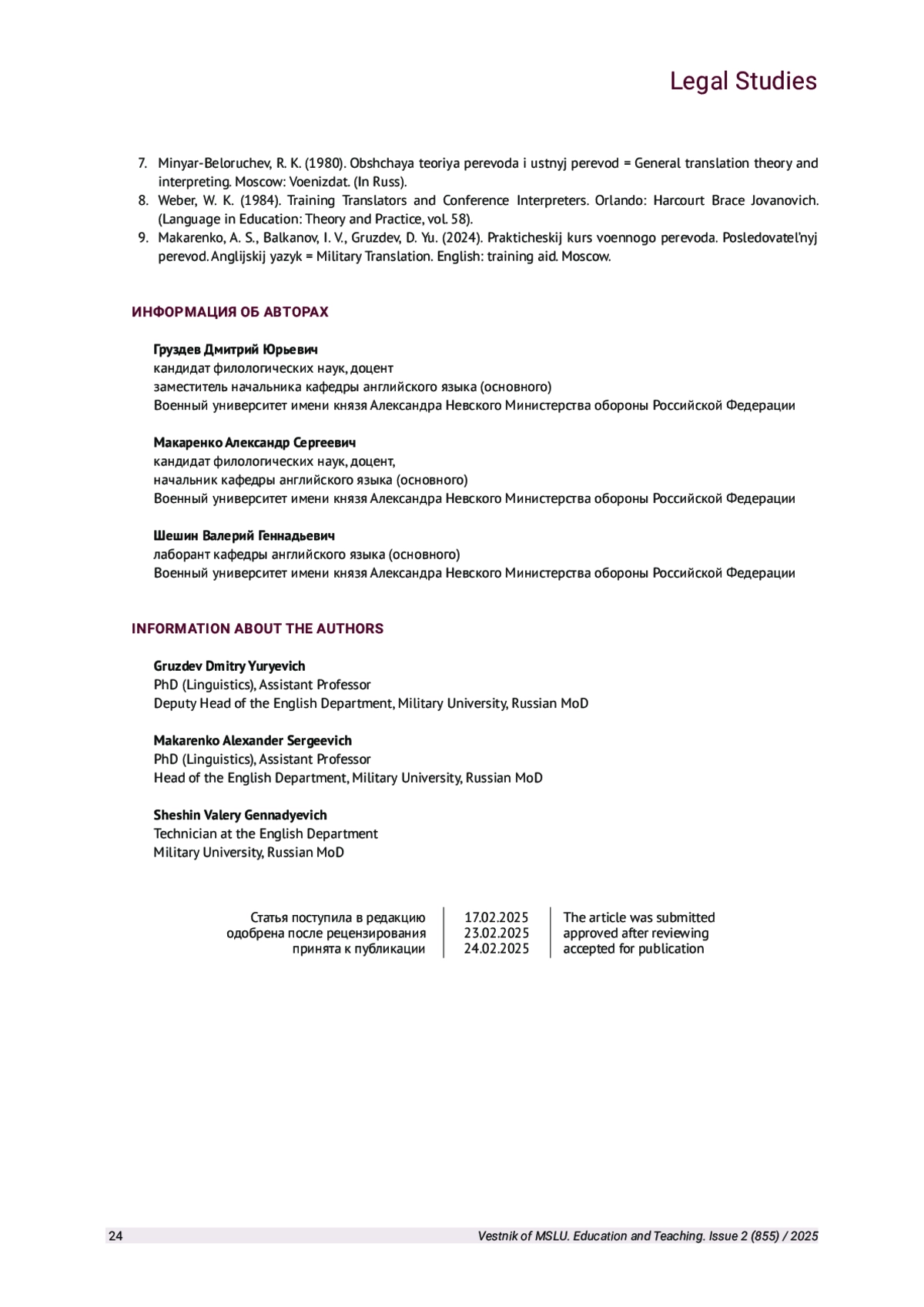 Журнал: ВЕСТНИК МОСКОВСКОГО ГОСУДАРСТВЕННОГО ЛИНГВИСТИЧЕСКОГО УНИВЕРСИТЕТА. ОБРАЗОВАНИЕ И ПЕДАГОГИЧЕСКИЕ НАУКИ