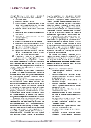 Статья посвящена формированию лексической компетенции студентов-бакалавров, обучающихся по профилю «Перевод и переводоведение». В статье представлен обзор исследований по теме, уточнено понятие лексической компетенции применительно к обучению студентов-переводчиков. Автор рассматривает факторы, определяющие особенности развития лексической компетенции при обучении речевой деятельности аудирования, подробно характеризует этапы формирования компетенции, приводит примеры инструкций к упражнениям.