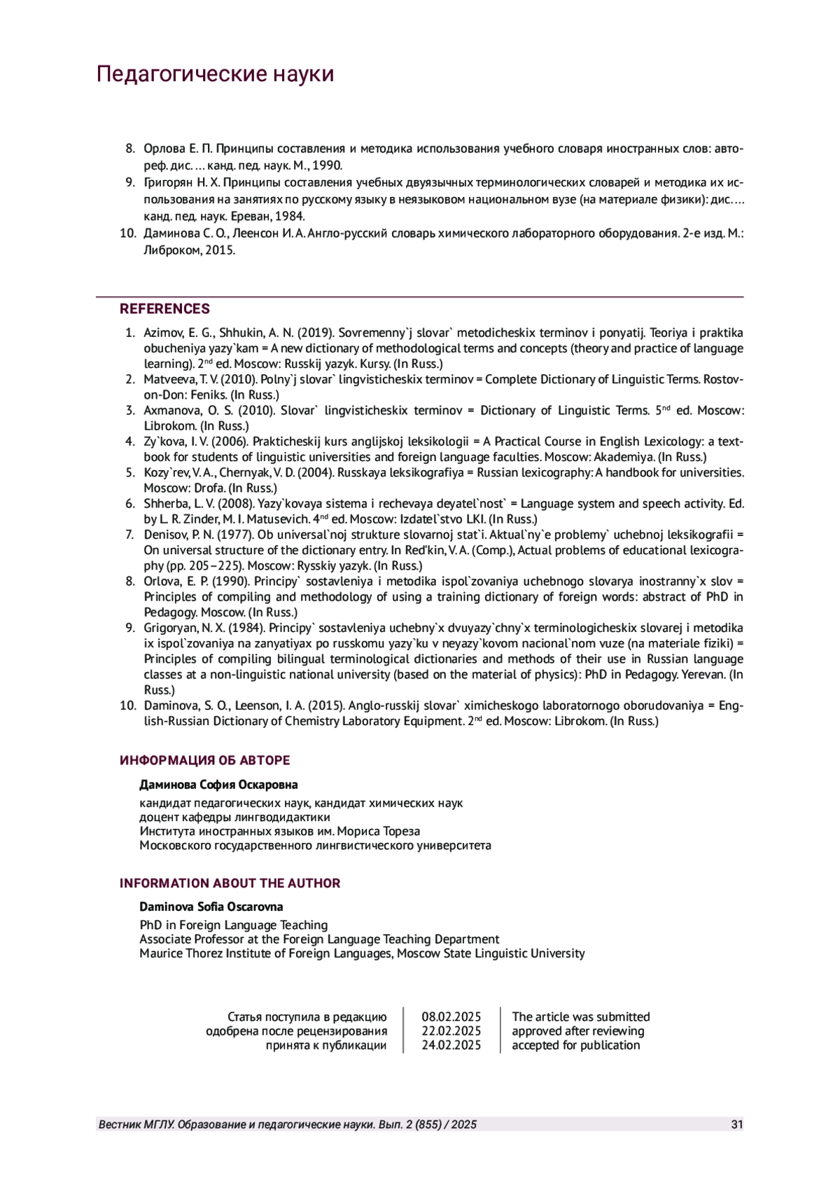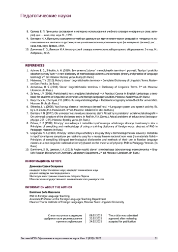 9. Григорян Н. Х. Принципы составления учебных двуязычных терминологических словарей и методика их использования на занятиях по русскому языку в неязыковом национальном вузе (на материале физики): дис.. канд. пед. наук. Ереван, 1984.