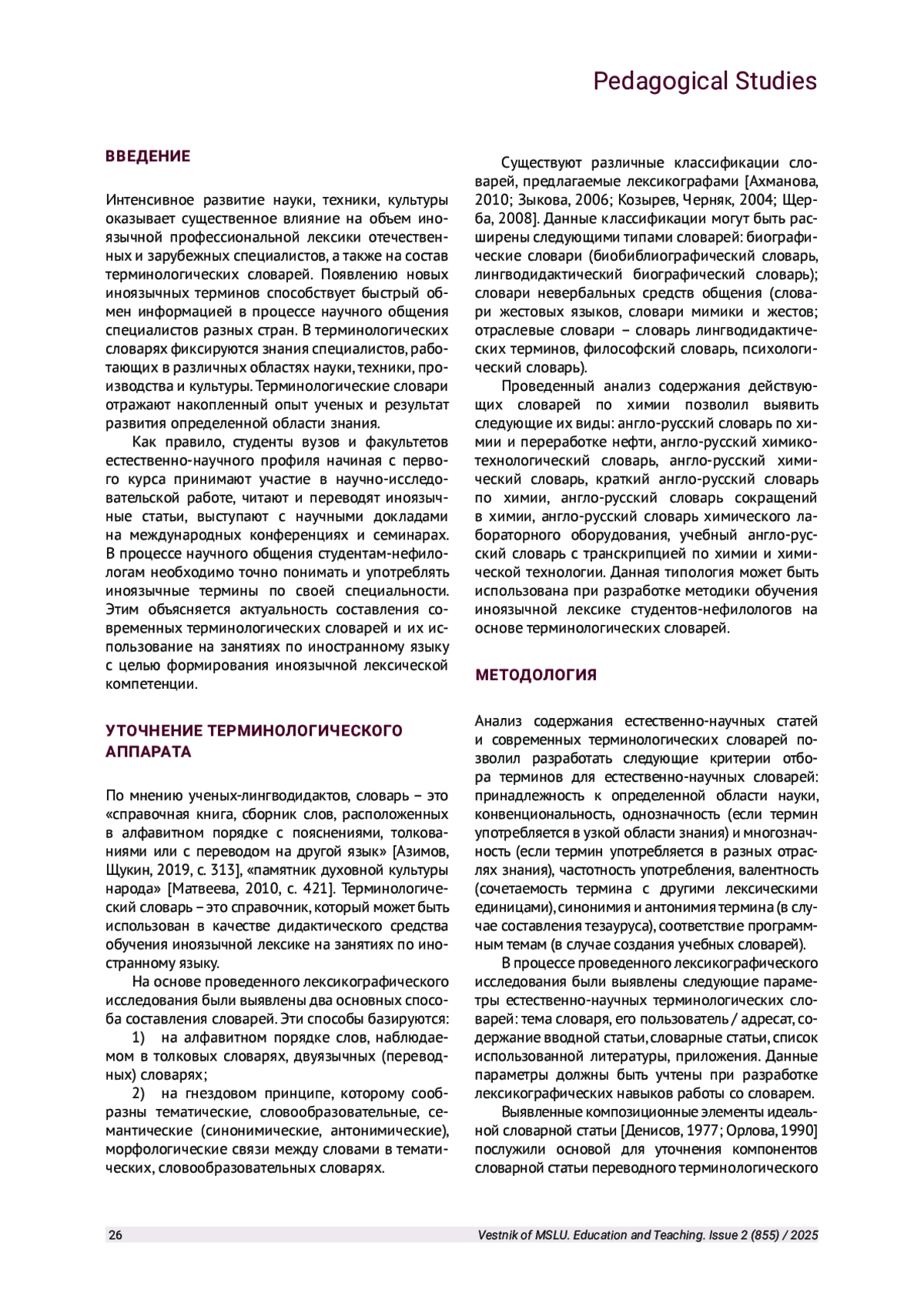 1. Азимов Э. Г., Щукин А. Н. Современный словарь методических терминов и понятий. Теория и практика обучения языкам. 2-е изд., стер. М.: Русский язык. Курсы, 2019. EDN: WAWCWY