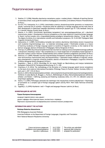 Журнал: ВЕСТНИК МОСКОВСКОГО ГОСУДАРСТВЕННОГО ЛИНГВИСТИЧЕСКОГО УНИВЕРСИТЕТА. ОБРАЗОВАНИЕ И ПЕДАГОГИЧЕСКИЕ НАУКИ