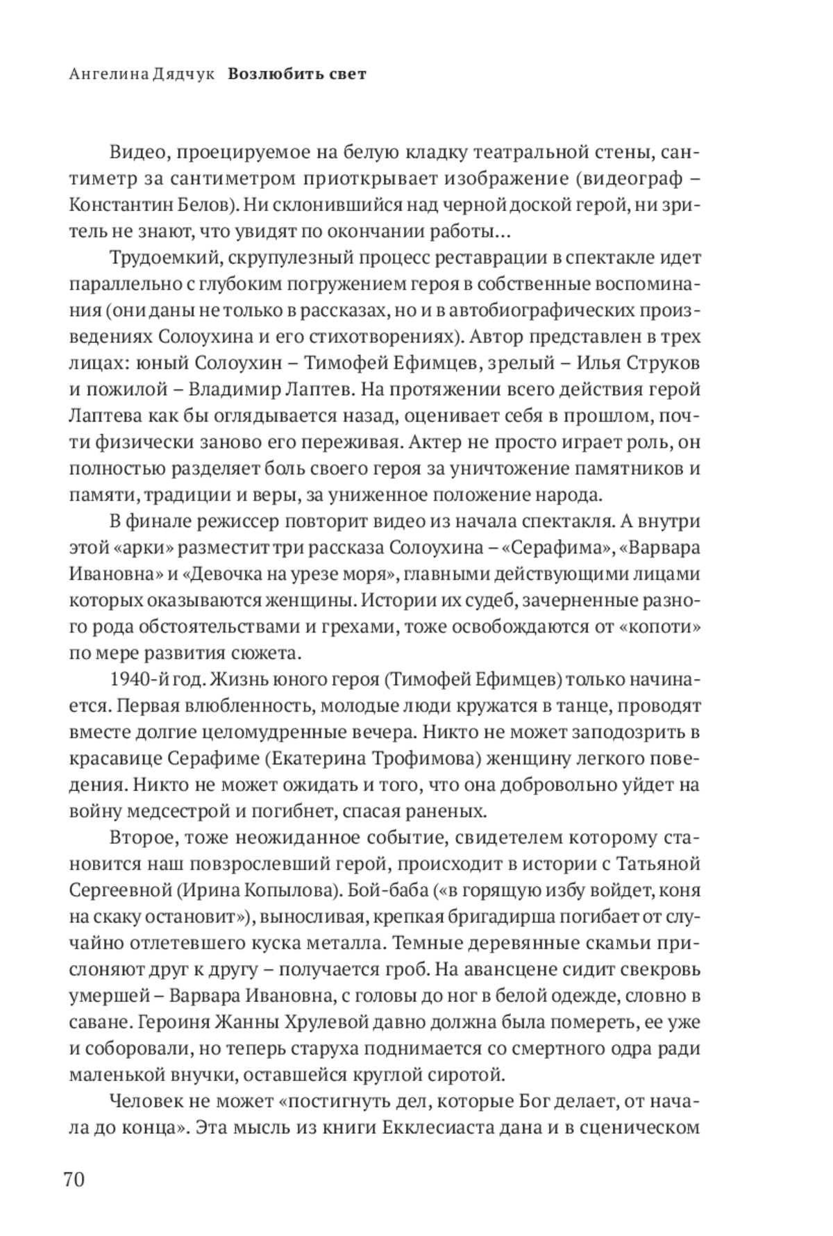 Статья посвящена девятому выпуску «Мнемозины» (Мнемозина. Документы и факты из истории отечественного театра XX века. Вып. 9. Редактор-составитель В. В. Иванов. «Артист. Режиссер. Театр». Москва. 2024). Однако это не просто рецензия на книгу в привычном понимании, а скорее диалог автора с ее героями - Алисой Коонен, Наумом Берковским, Натальей Крымовой, Борисом Зингерманом и др., а также с самим временем - с XX в. и театром, который он подарил. Статья - своего рода мемуары, вызванные к жизни опубликованными в книге письмами, а кроме того - анализ сказанного в них в контексте отечественной культуры и жизни как таковой. Внимание уделяется и вопросу о значении публикации документов.