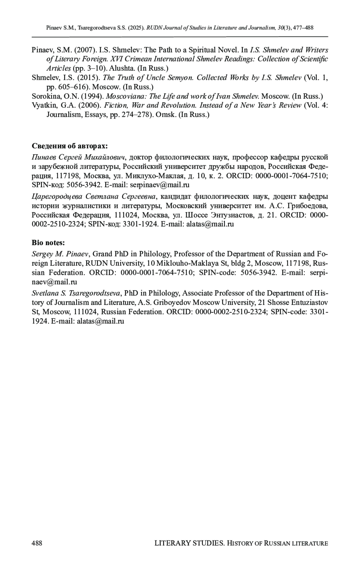 13. Пинаев С.М. И.С. Шмелёв: путь к духовному роман // И.С. Шмелёв и писатели литературного зарубежья. XVI Крымские международные шмелёвские чтения: сб. науч. статей. Алушта, 2007. С. 3-10.