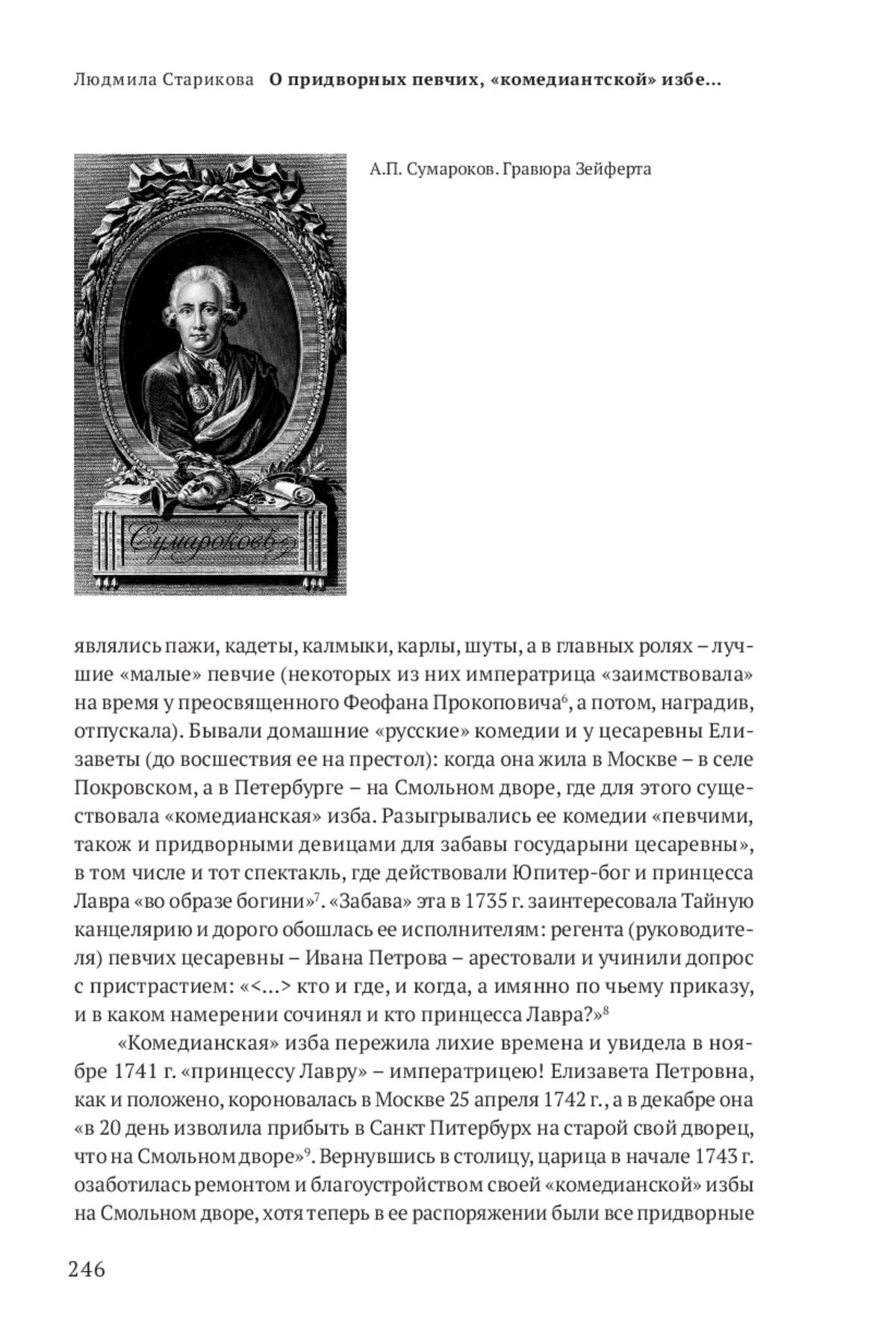 1. Старикова Л.М. О Сумарокове время замолвить нам слово // Современная драматургия. 2019. № 3. С. 251-255.