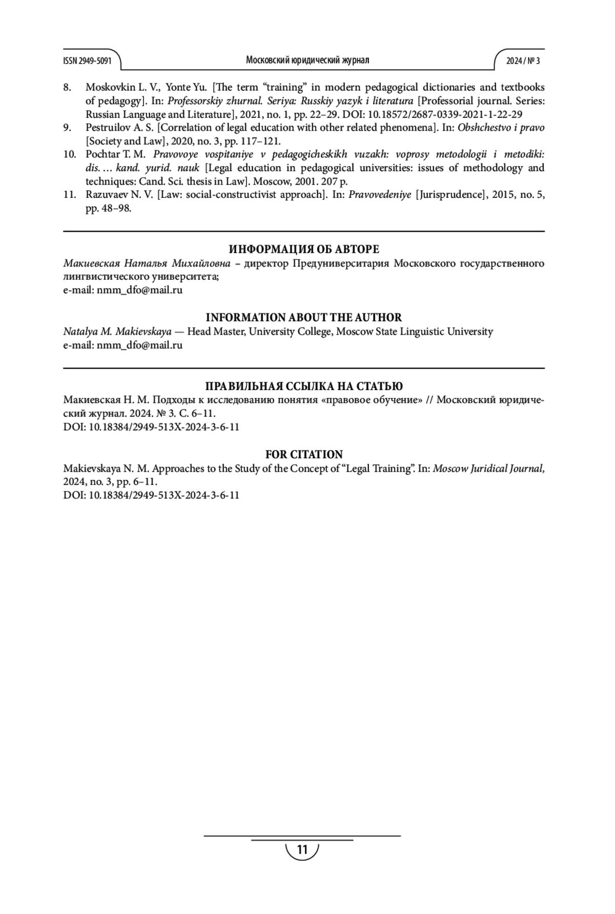 9. Пеструилов А. С. Соотношение правового воспитания с иными смежными явлениями // Общество и право. 2020. № 3. С. 117-121.