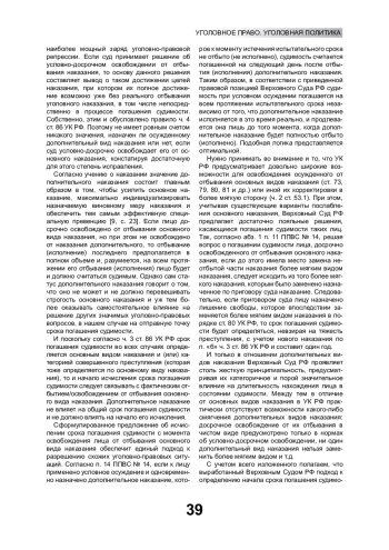 Рассмотрена проблема исчисления сроков погашения судимости при досрочном освобождении осужденного от отбывания основного наказания и одновременном сохранении обязанности реально отбыть (исполнить) дополнительный вид наказания. Подвергнута критике правовая позиция, закрепленная по данному вопросу в постановлении Пленума Верховного Суда РФ от 7 июня 2022 г. No 14. Сформулированы предложения по ее корректировке, согласующиеся с тенденциями гуманизации уголовного законодательства и обеспечивающие системный подход к решению смежных уголовно-правовых вопросов