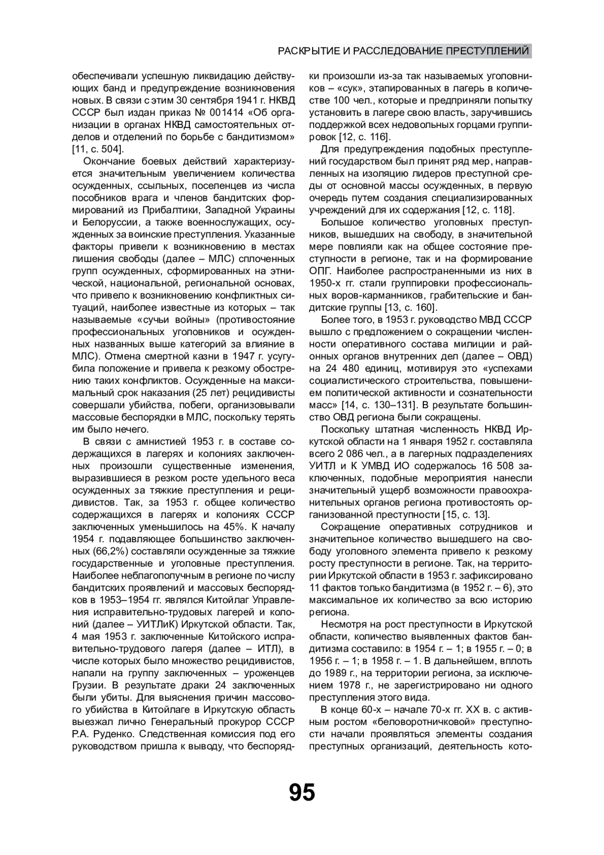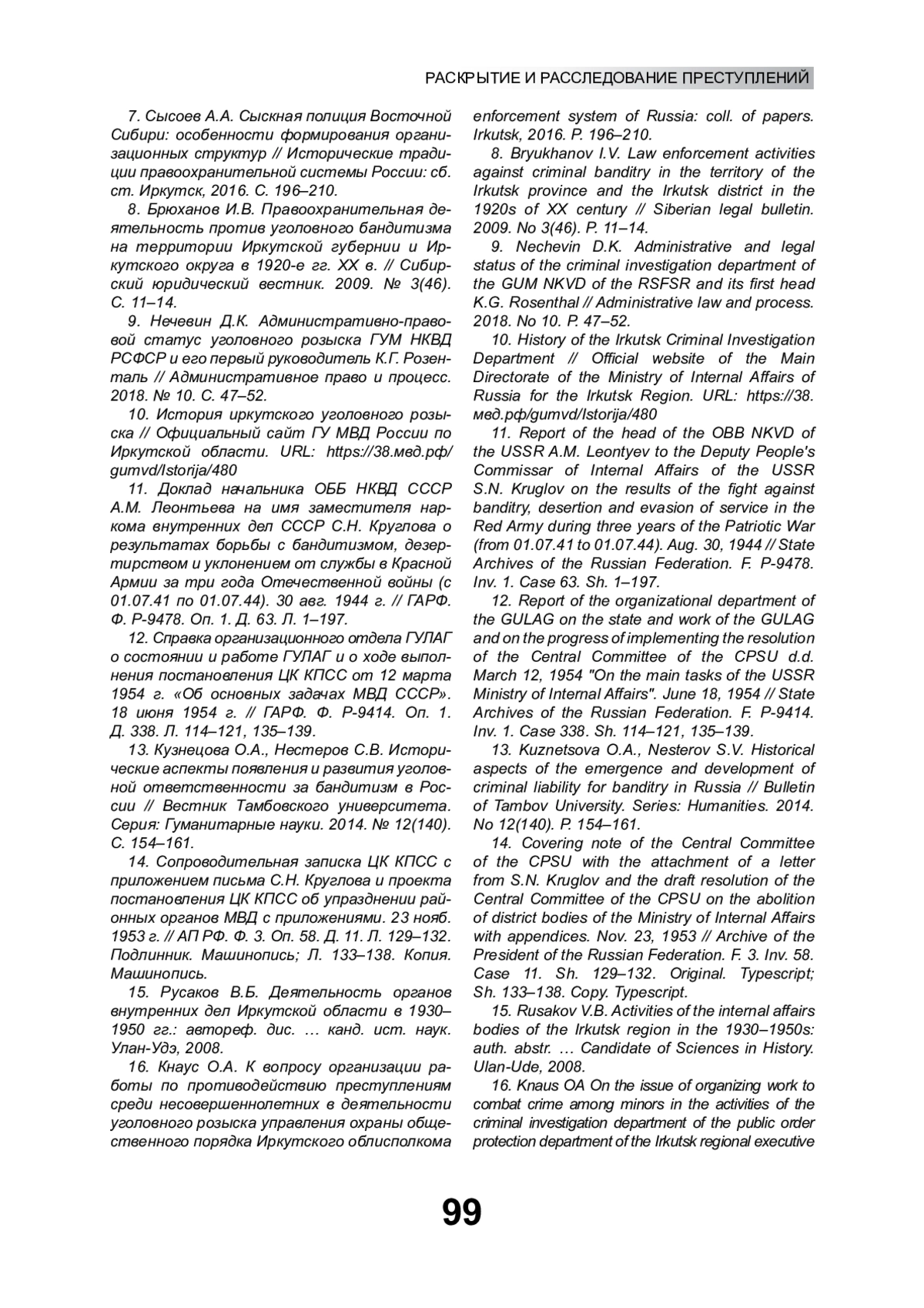 15. Русаков В.Б. Деятельность органов внутренних дел Иркутской области в 1930-1950 гг.: автореф. дис. … канд. ист. наук. Улан-Удэ, 2008. EDN: NKQWBR