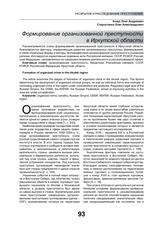 2. Кнаус О.А. Формирование понятия “организованная преступность” в российском уголовном праве // Криминалистика: вчера, сегодня, завтра. 2024. № 2(30). С. 140-151. EDN: SBMIQA