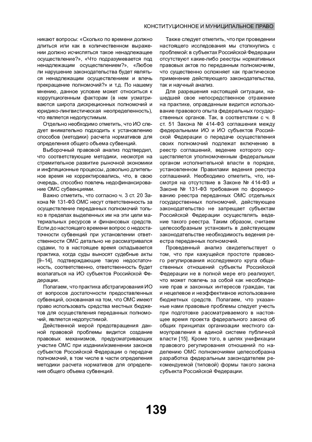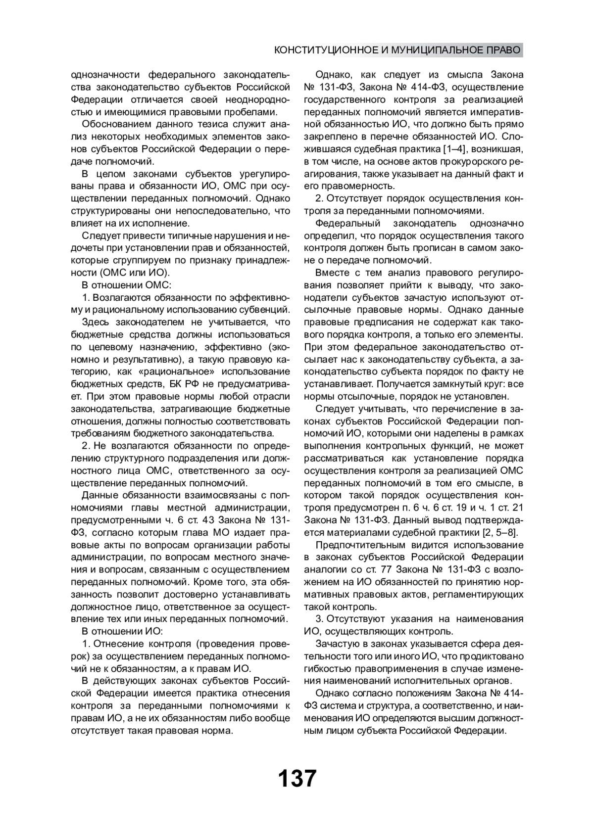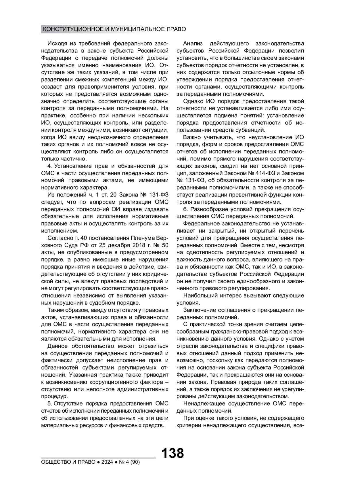 Статья: О НЕКОТОРЫХ ПРОБЛЕМАХ ПРАВОВОГО РЕГУЛИРОВАНИЯ НАДЕЛЕНИЯ ОРГАНОВ МЕСТНОГО САМОУПРАВЛЕНИЯ ОТДЕЛЬНЫМИ ГОСУДАРСТВЕННЫМИ ПОЛНОМОЧИЯМИ СУБЪЕКТА РОССИЙСКОЙ ФЕДЕРАЦИИ (2024)