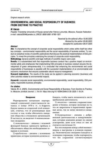 7. Алешкова И. А., Коданева С. И. Принципы ESG в российской модели корпоративного управления: современное состояние и перспективы // Право. Журнал Высшей школы экономики. 2025. Т. 18. № 2. С. 118-138. https://doi.org/10.17323/2072-8166.2025.2.118.138