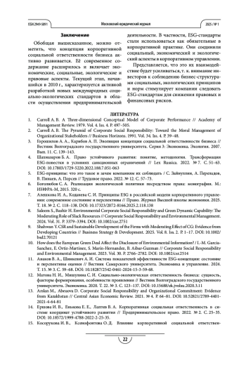 1. Carroll A. B. A Three-dimensional Conceptual Model of Corporate Performance // Academy of Management Review. 1979. Vol. 4. Iss. 4. P. 497-505.