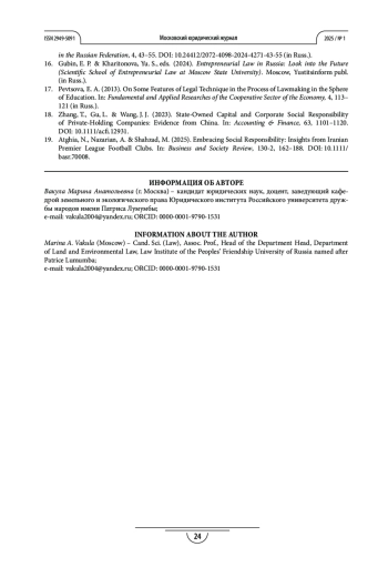 19. Atghia N., Nazarian A., Shahzad M. Embracing Social Responsibility: Insights from Iranian Premier League Football Clubs // Business and Society Review. 2025. Vol. 130. Iss. 2. P. 162-188. https://doi.org/10.1111/basr.70008