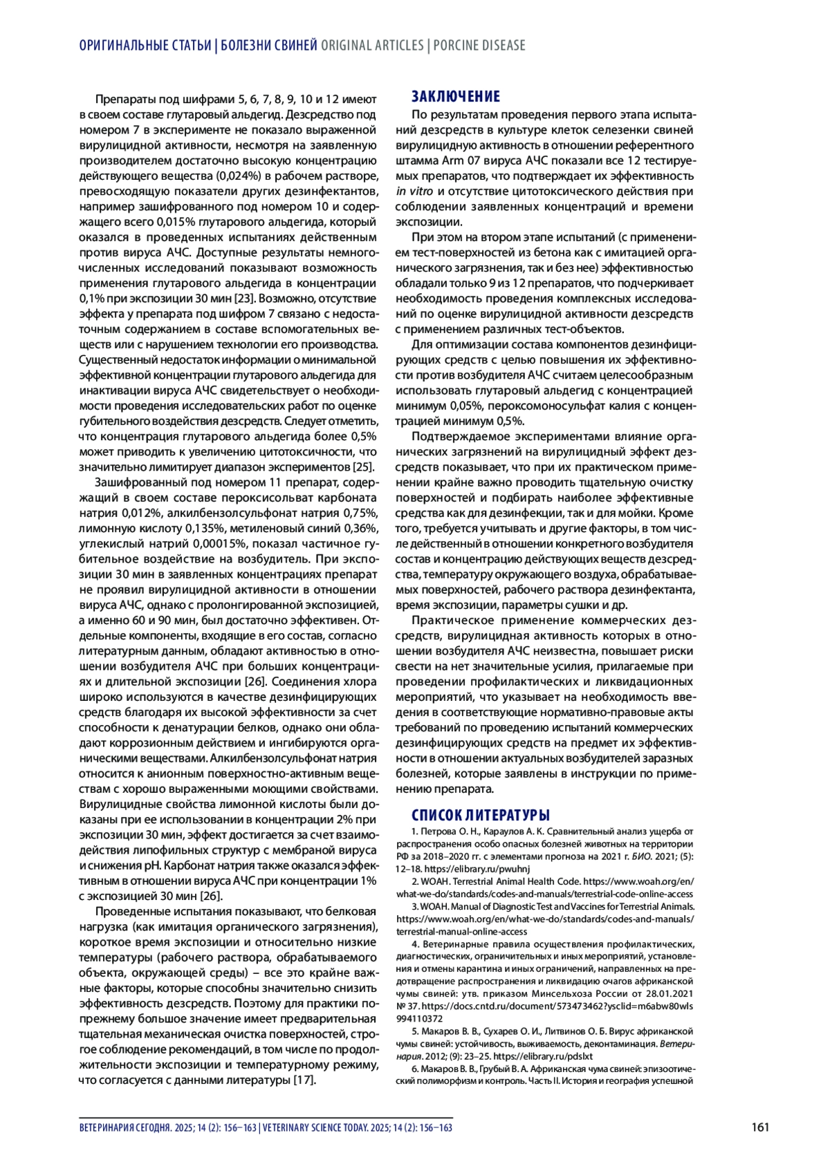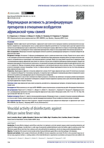 Статья: Вирулицидная активность дезинфицирующих препаратов в отношении возбудителя африканской чумы свиней (2025)