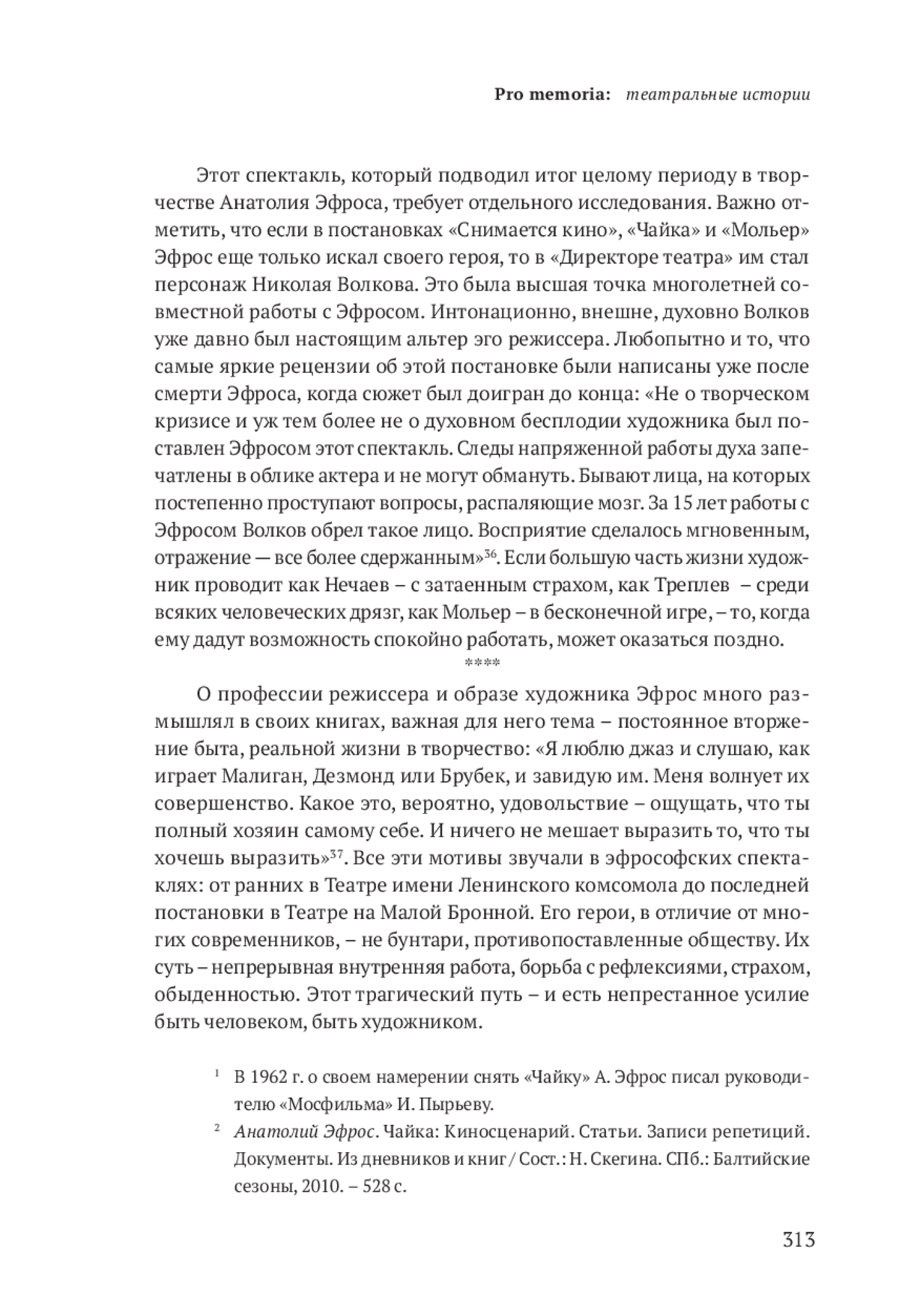 10. Анатолий Эфрос. Чайка: Киносценарий. Статьи. Записи репетиций. Документы. Из дневников и книг / Сост.: Н. Скегина. СПб: Балтийские сезоны, 2010. С. 405.