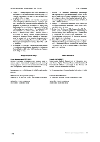 5. Еременко В.И. 2023. К вопросу о перспективах развития евразийской патентной системы. - ИС. Промышленная собственность. № 1. С. 4-21.