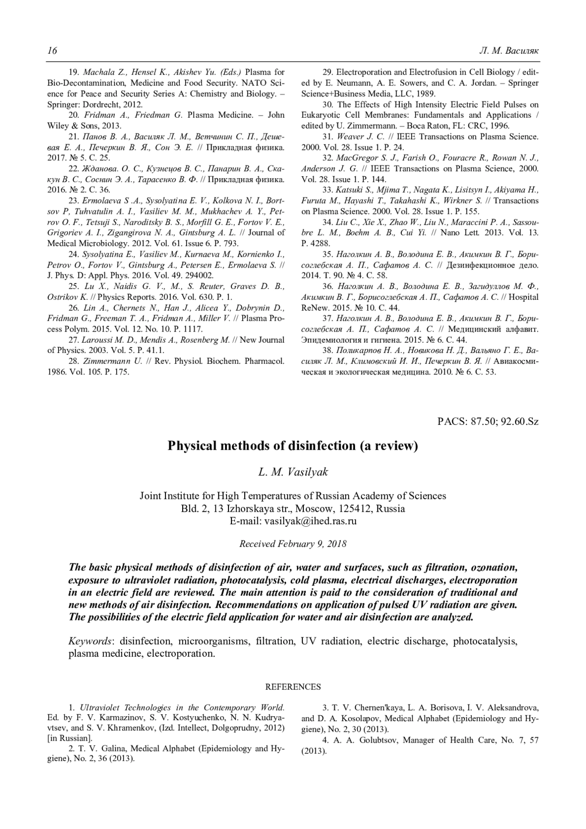 Василяк Л. М. Физические методы дезинфекции (обзор) 5