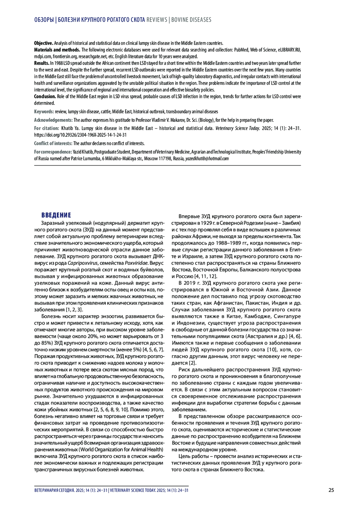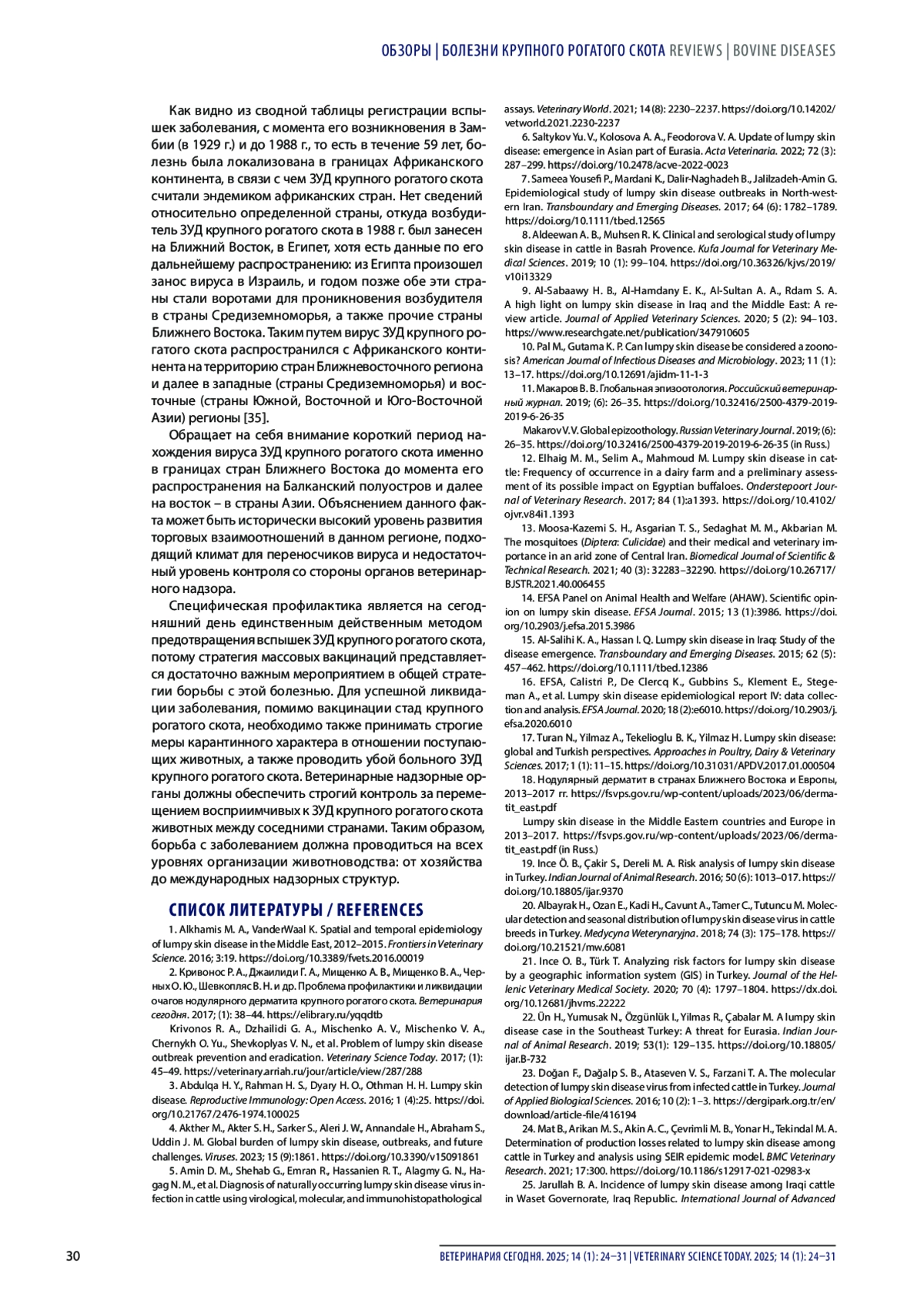 25. Jarullah B. A. Incidence of lumpy skin disease among Iraqi cattle in Waset Governorate, Iraq Republic.International Journal of Advanced Research. 2015; 3 (4): 936-939. https://www.journalijar.com/uploads/393_IJAR-5553.pdf.