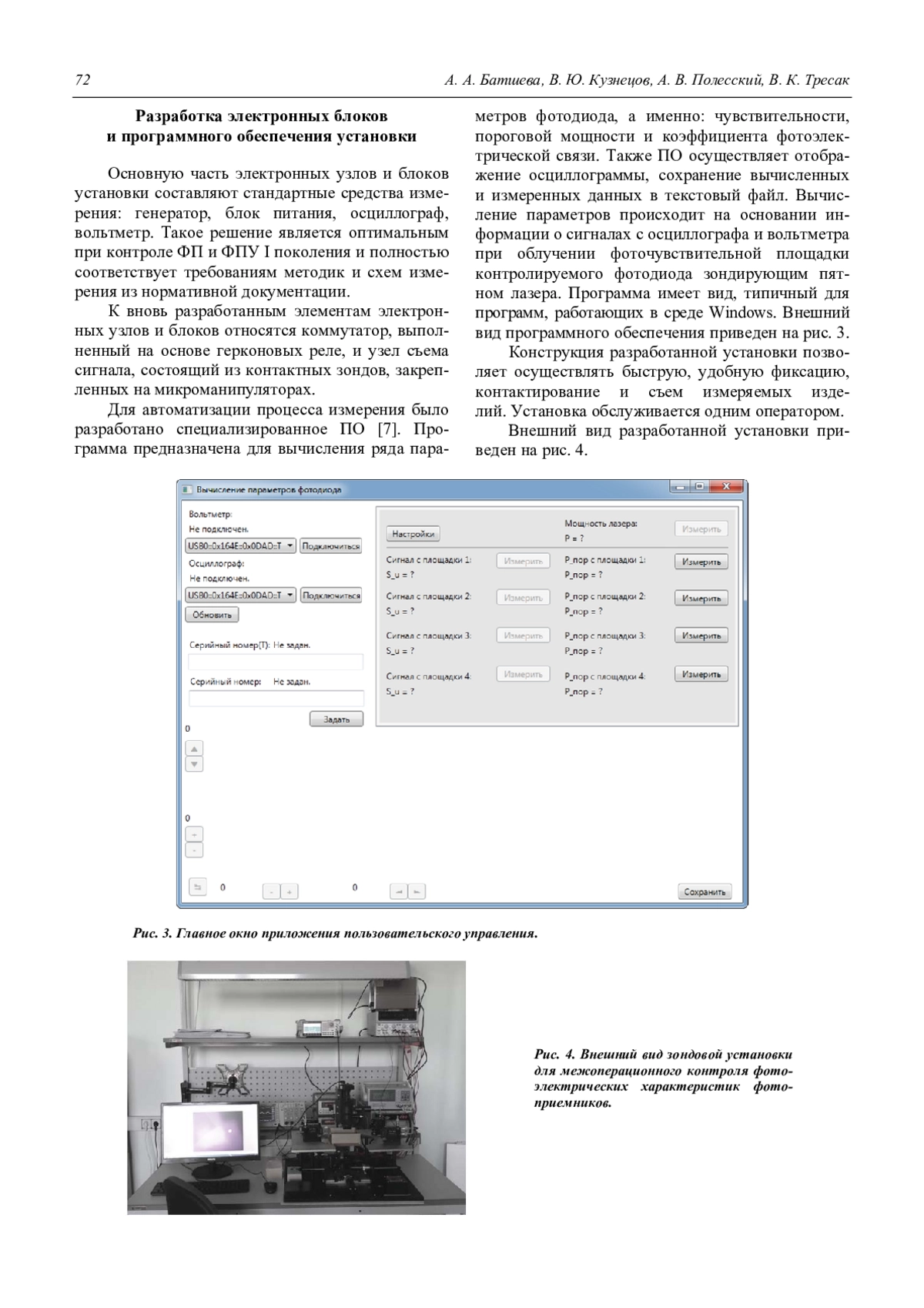 Батшева А. А., Кузнецов В. Ю., Полесский А. В., Тресак В. К. Универсальная зондовая установка для межоперационного контроля фотоэлектрических характеристик фотоприемников 68