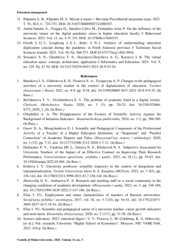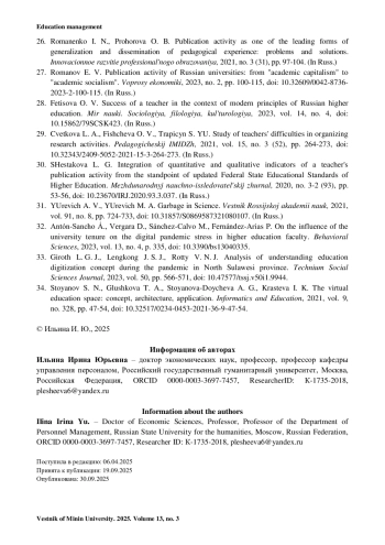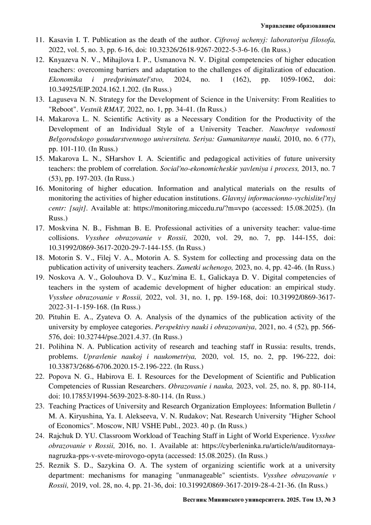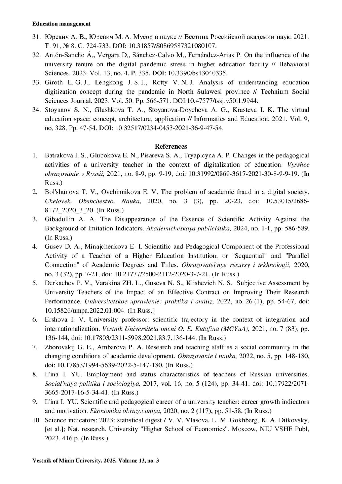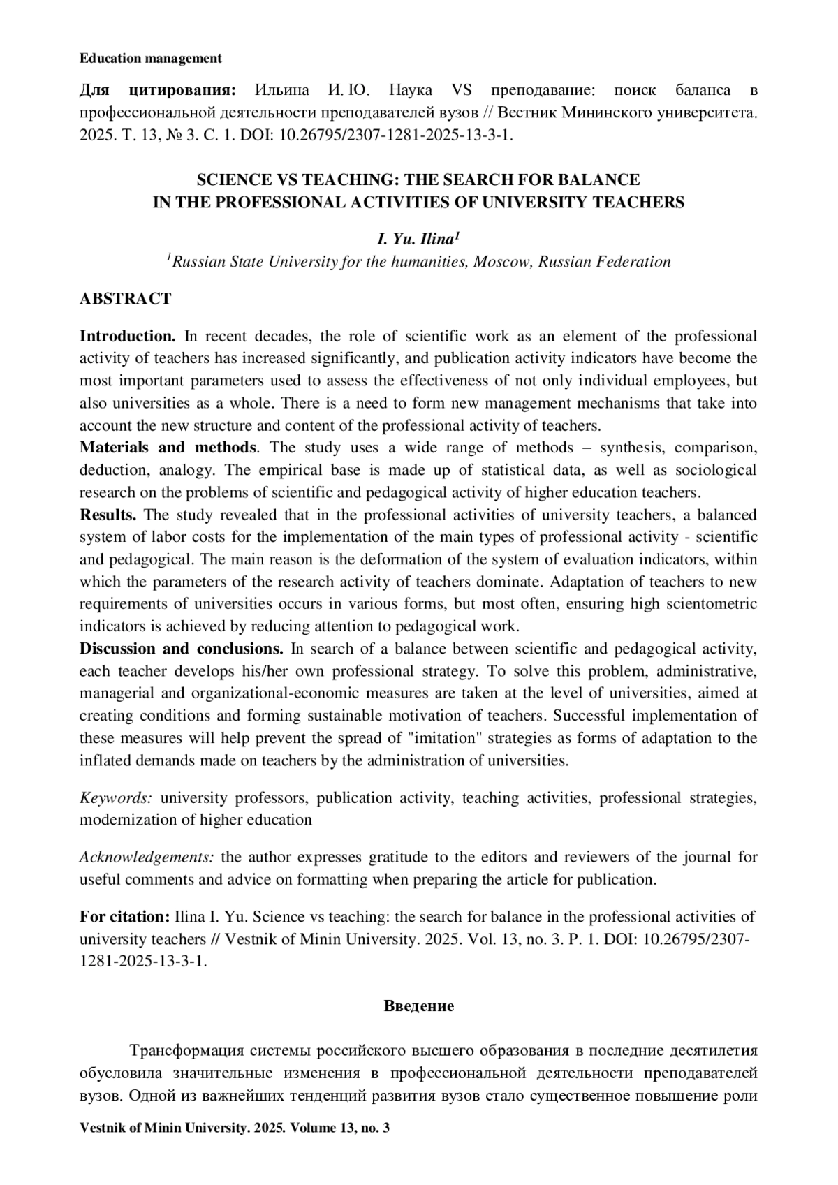 ИЛЬИНА И. Ю. НАУКА VS ПРЕПОДАВАНИЕ: ПОИСК БАЛАНСА В ПРОФЕССИОНАЛЬНОЙ ДЕЯТЕЛЬНОСТИ ПРЕПОДАВАТЕЛЕЙ ВУЗОВ // ВЕСТНИК МИНИНСКОГО УНИВЕРСИТЕТА. 2025. ТОМ 13, № 3