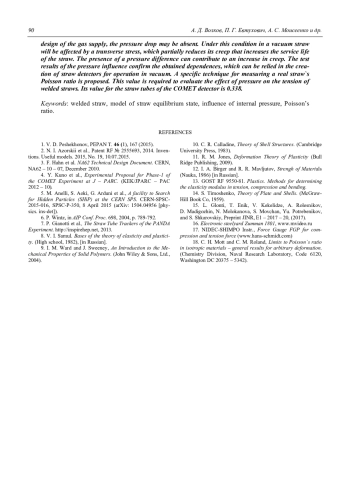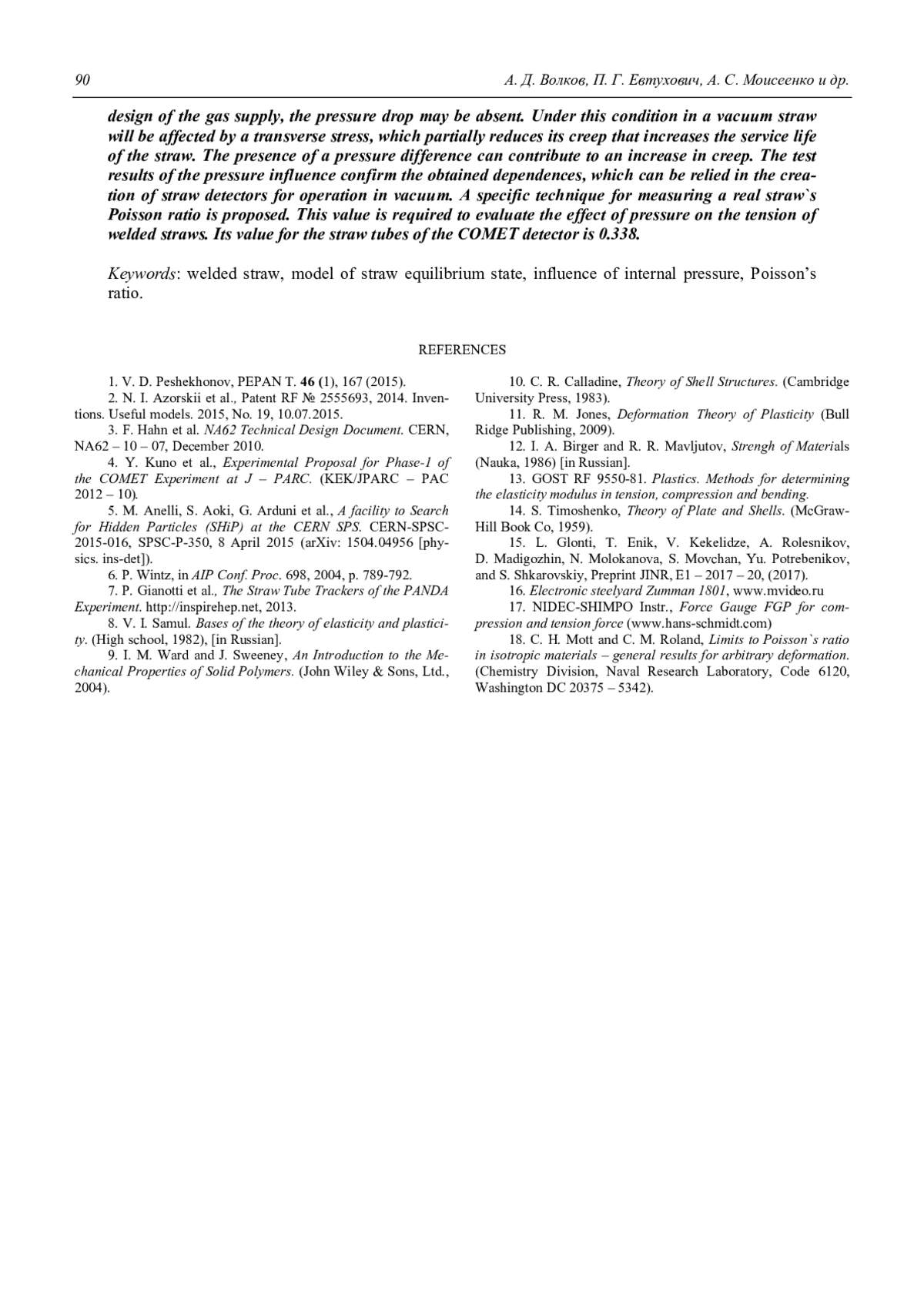 ВОЛКОВ А. Д., ЕВТУХОВИЧ П. Г., МОИСЕЕНКО А. С., САБИРОВ Б. М., ЦАМАЛАИДЗЕ З., ЦВЕРАВА Н. ВЛИЯНИЕ ВНУТРЕННЕГО ДАВЛЕНИЯ НА НАТЯЖЕНИЕ В СВАРНЫХ СТРОУ ТРЕКОВОГО ДЕТЕКТОРА // УСПЕХИ ПРИКЛАДНОЙ ФИЗИКИ. 2018. ТОМ 6, №1